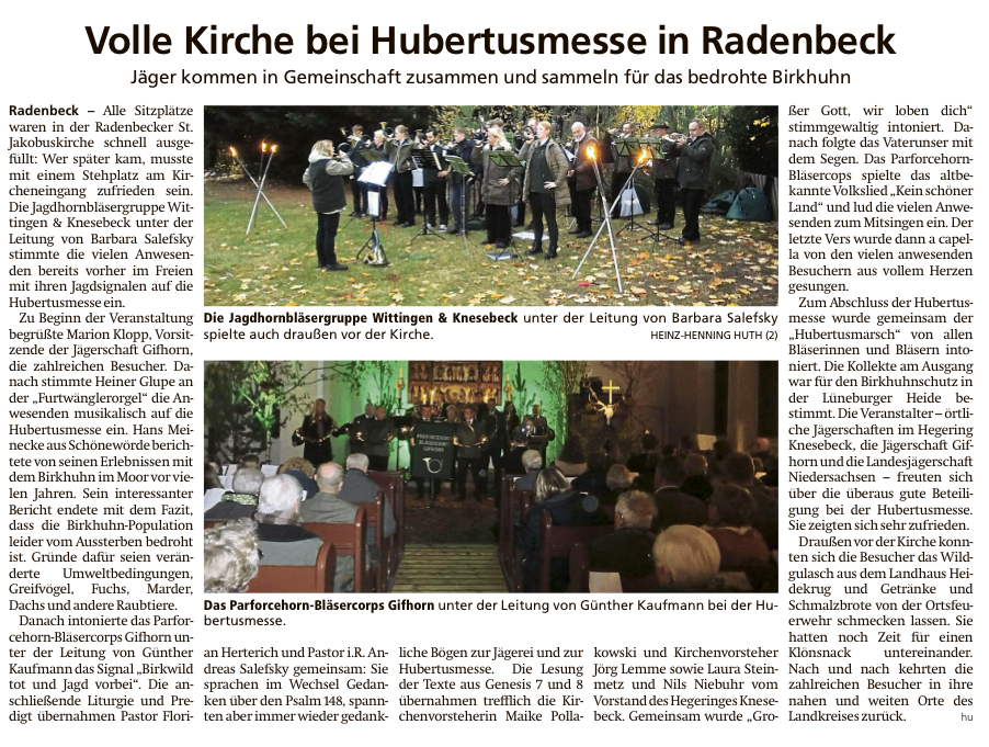 Doch zunächst spielen die Jagdhorn- und Parforcehorn-Bläser aus den Gruppen des Hegeringes Wittingen und Isenhagener Land unter der Leitung von Kreisbläserobmann Volker Smilowski zur „Begrüßung“ auf und eröffnen damit die Siegerehrungen.