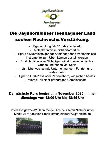 Die Jagdhornbläser Isernhagener Land suchen Verstärkung