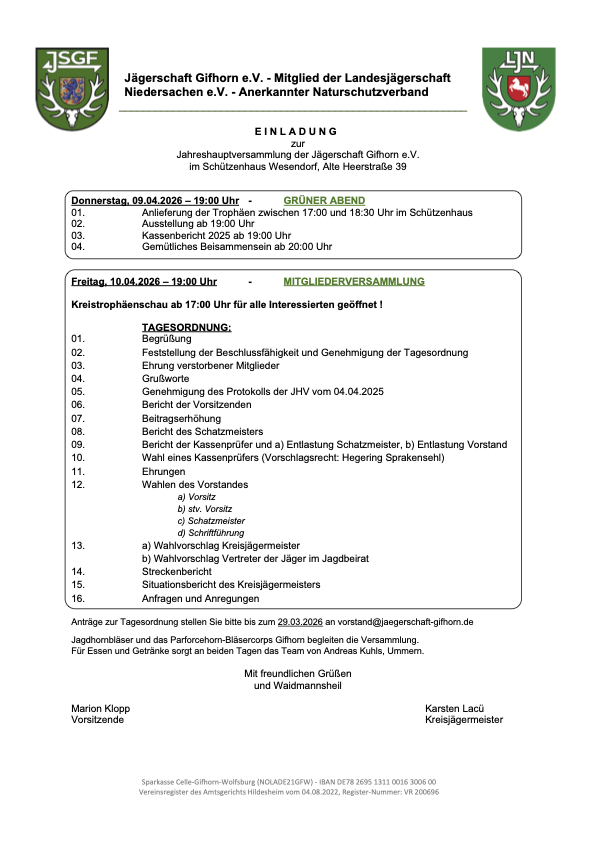 Sie wünscht weiterhin viel Erfolg in der laufenden Jagdsaison und einen guten Nachhauseweg.